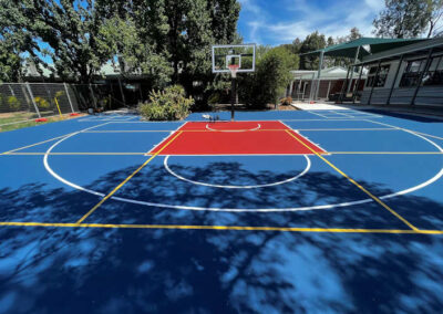 We use a method called “Multi-Layer Line Marking.” By using distinct, high-contrast colours (e.g., white for tennis, yellow for basketball, and blue for netball), players can easily distinguish the boundaries for their specific game. We also use adjustable or removable net systems to keep the playing area clear.